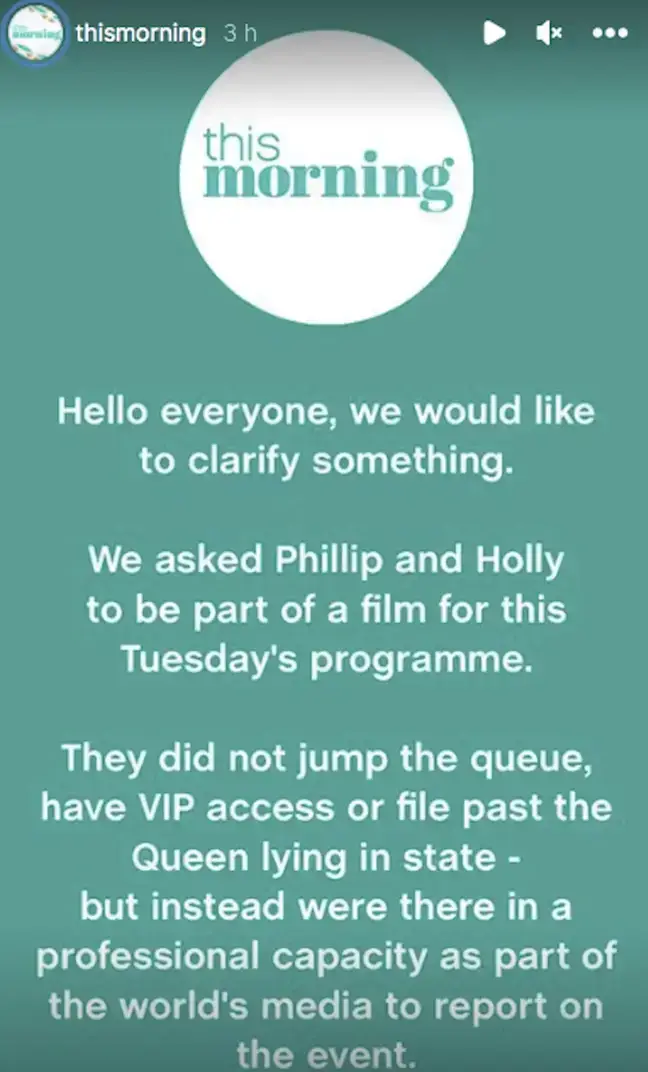 The two This Morning hosts were criticised after viewers thought they 'jumped the queue' to see the Queen lying-in-state. ITV has denied all of the allegations.