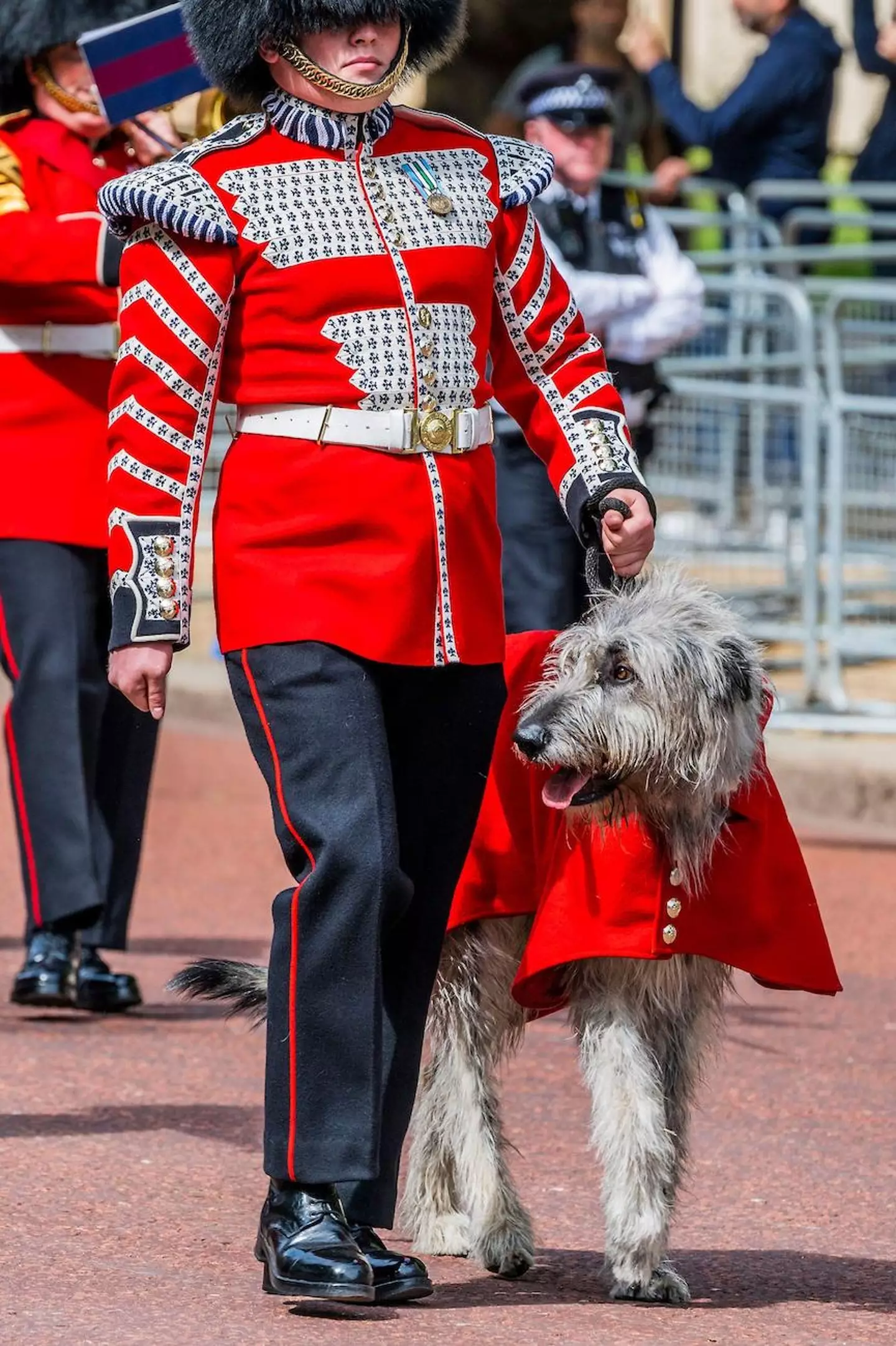 However, the reason why we're seeing the two-year-old dog is because the Irish Wolfhound happens to be the official regimental mascot of the Irish Guards.