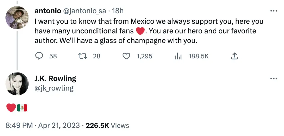 Another fan said: “I want you to know that from Mexico we always support you, here you have many unconditional fans. You are our hero and our favourite author. We'll have a glass of champagne with you.”