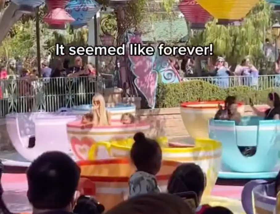 She then says ‘it seemed like forever’ before the clip cuts to Rachael, her partner and her baby enjoying the Mad Tea Party ride, with the TikToker adding: “We finally got on… 30 minutes later.”