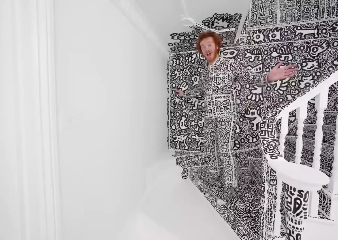 A man has managed to cover every inch of his home in doodles, having spent the past two years bring his unique monochrome vision to life.