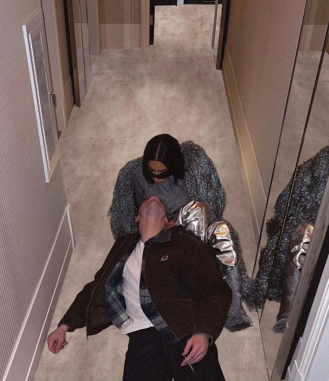 One snap showed Pete, 28, lying on the floor next to Kim as they gaze at one another, about to kiss.