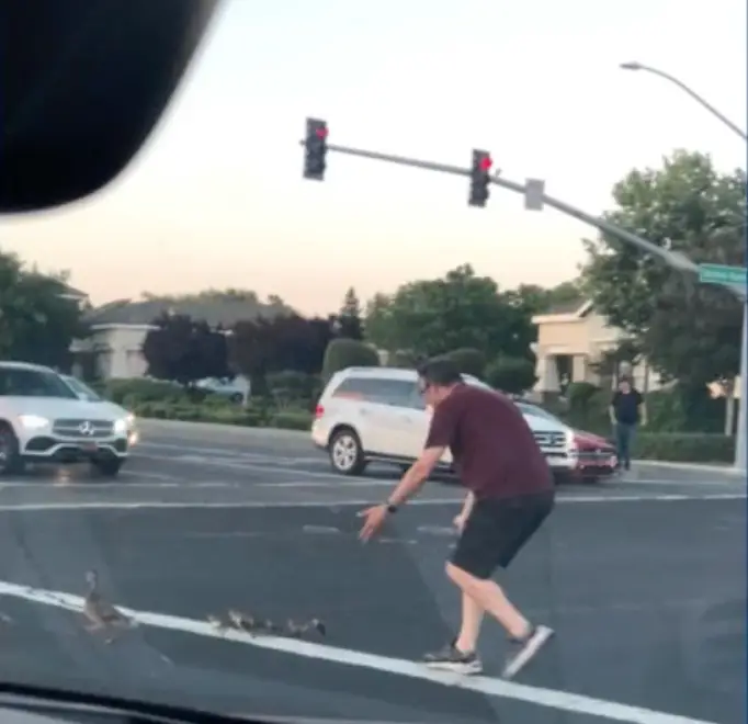 A Californian man has been hit and killed by a car after helping ducklings cross the road safely.