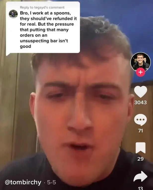 Birchy, who was dining at The Golden Beam Wetherspoons in Headingley, Leeds, said: "Right full madness anything you've ordered if not going to be sent because you are not going to be sent.