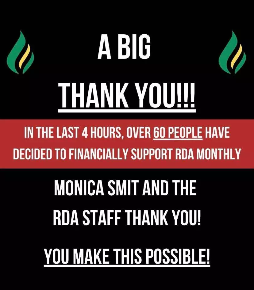 "If you don't see value in RDA, then that's fine but if you do see any value in it at all I would ask you to please contribute $5 a month - please."