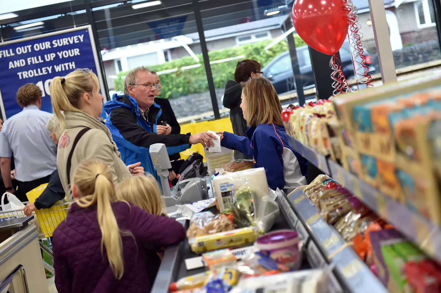 Aldi checkouts are quickly scanned and then paid for, with customers encouraged to use the benches that sit just past the checkout to pack their groceries into bags.