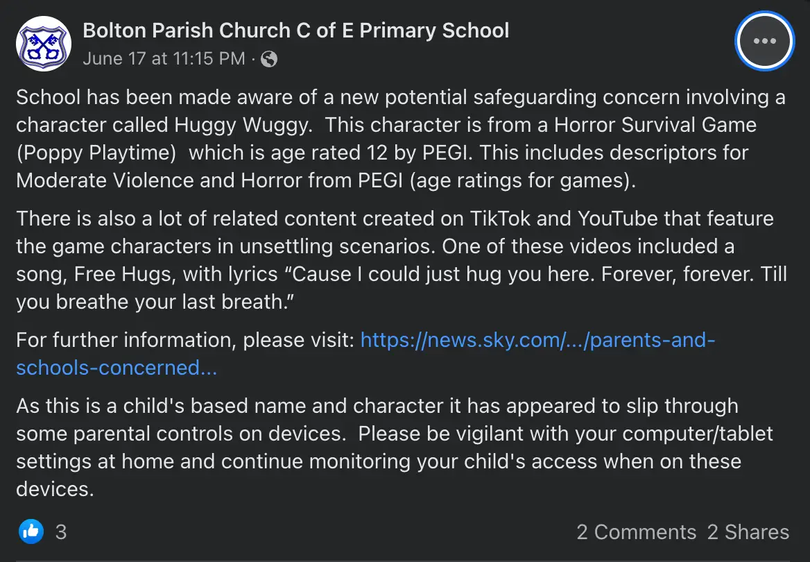 Experts have issued warnings after Poppy Playtime’s bone-chilling character ‘Huggy Wuggy’ has slipped through parental controls, emerging on children's social media content and gaming platforms.
