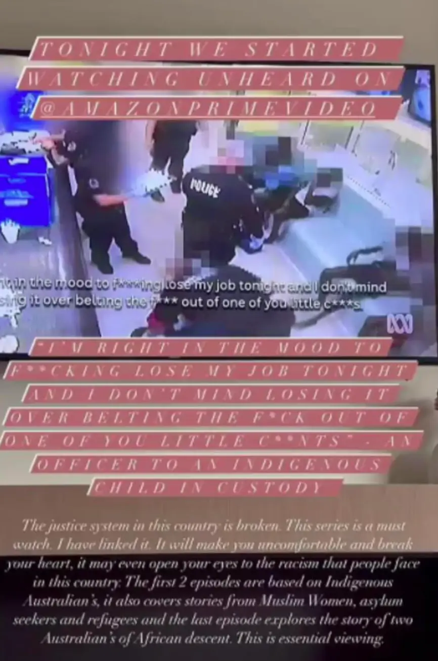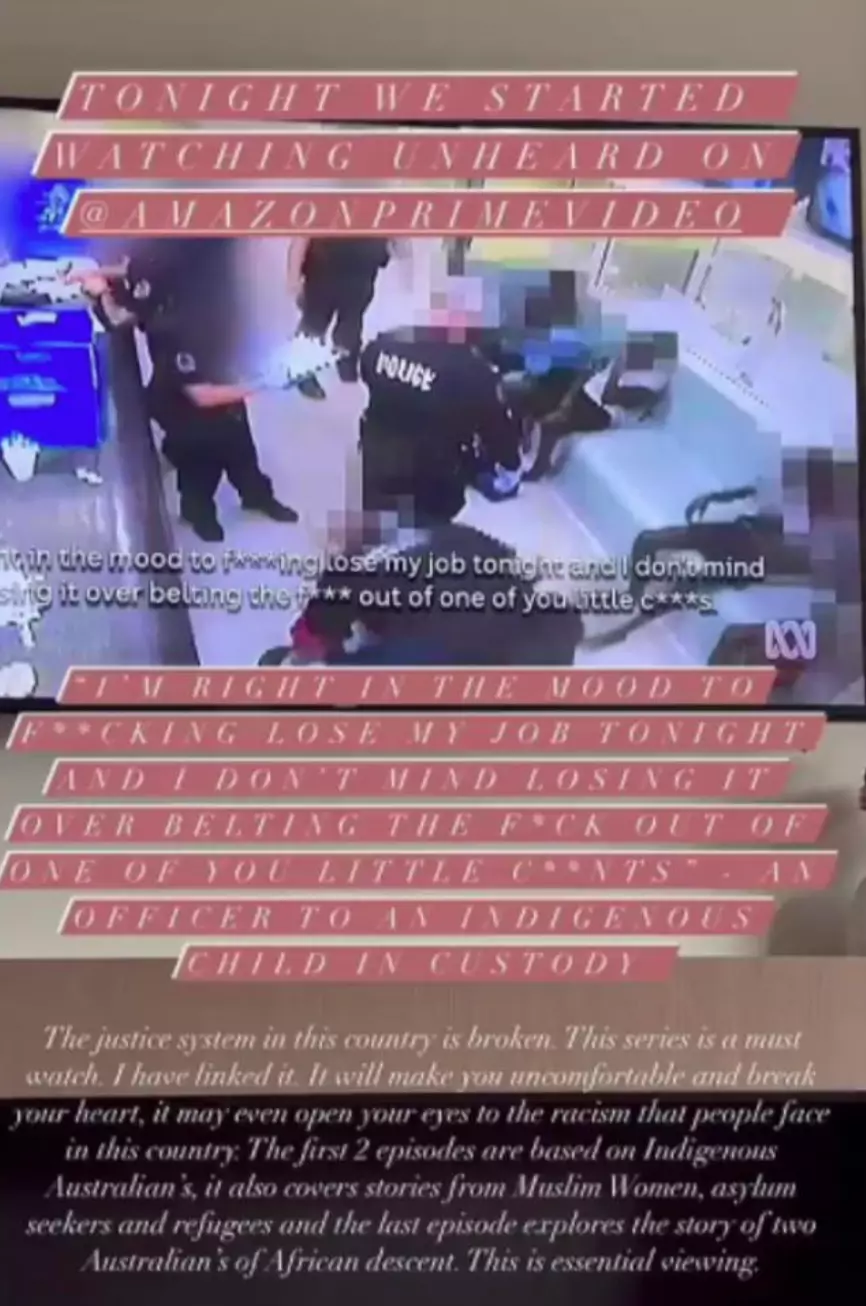 Franklin - who is married to AFL player and Noongar man Lance 'Buddy' Franklin - was reacting to the confronting Unheard series on Amazon Prime Video, which tracks racial discrimination in Australia, including Indigenous deaths in custody and how authorities target Indigenous youth.