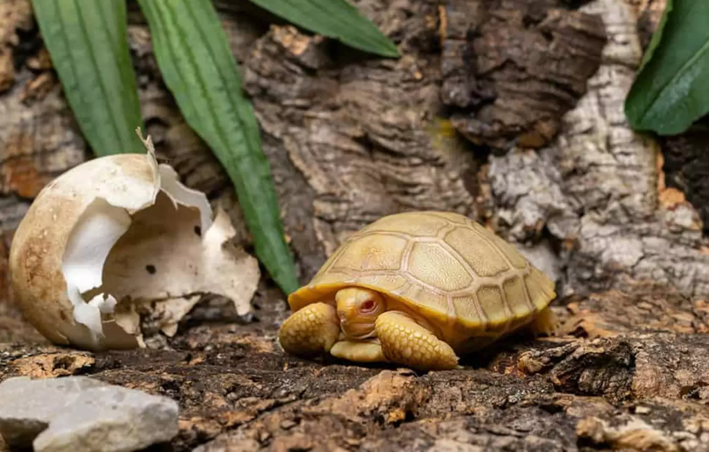 The zoo issued a statement revealing ‘this is the first time in the world that an albino Galapagos tortoise has been born and kept in captivity’.