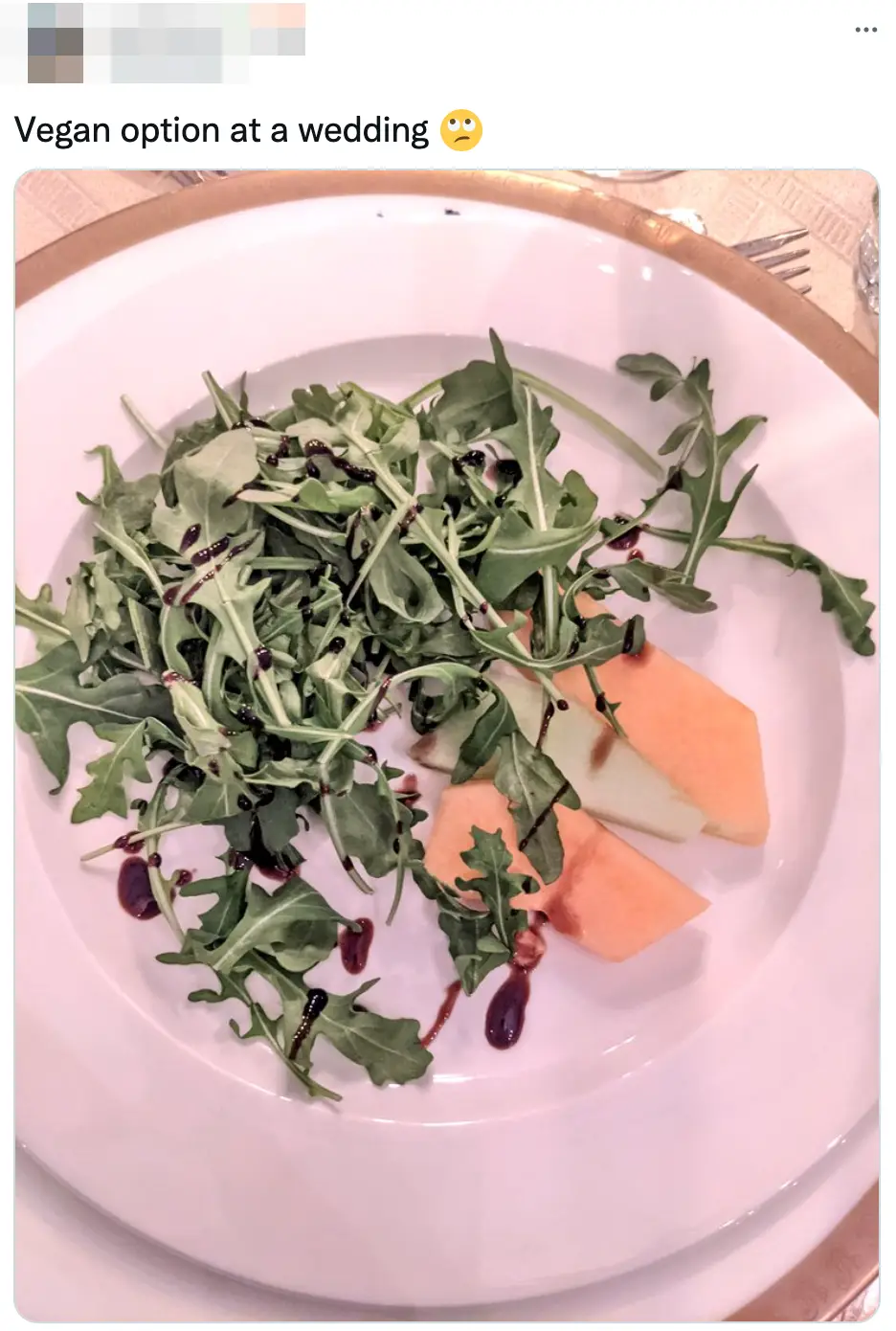 One woman has revealed the meal she was served at a recent wedding and it has been mercilessly mocked on social media.