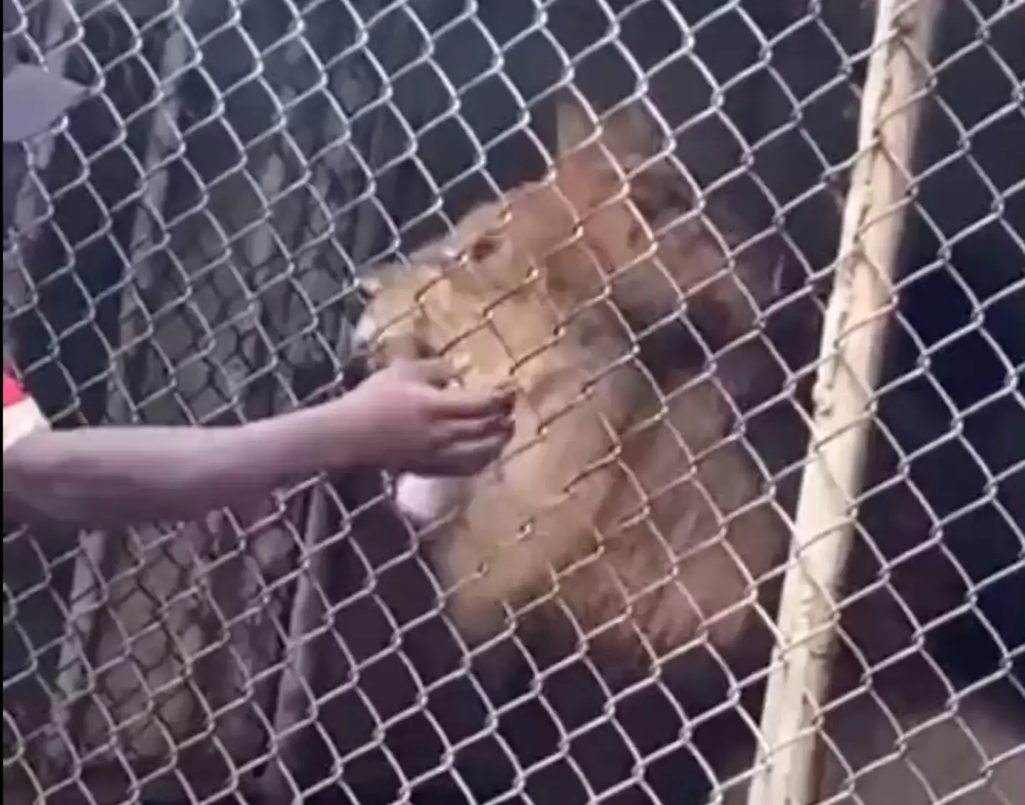Viral footage has captured the moment a man working at a Jamaican zoo has had his finger ripped off by a lion.