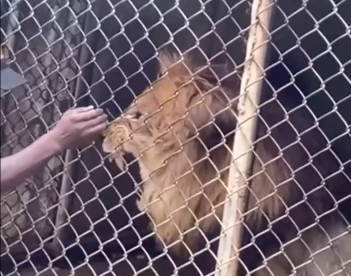 The now-viral video has sparked concern for the lion's welfare and treatment by staff.