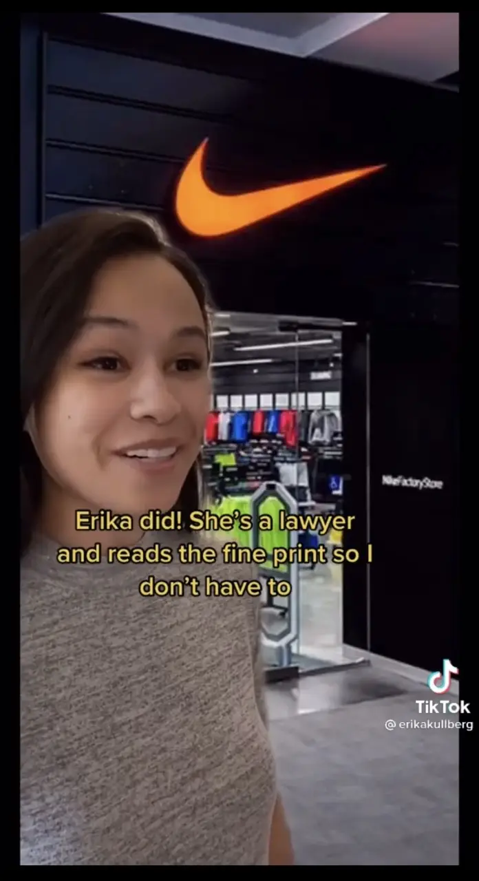 Captioning the clip ‘what Nike doesn’t want you to know about getting a free pair of shoes,’ Erika roleplays as both the customer and staff member to let her followers know if they could be in with a deal.