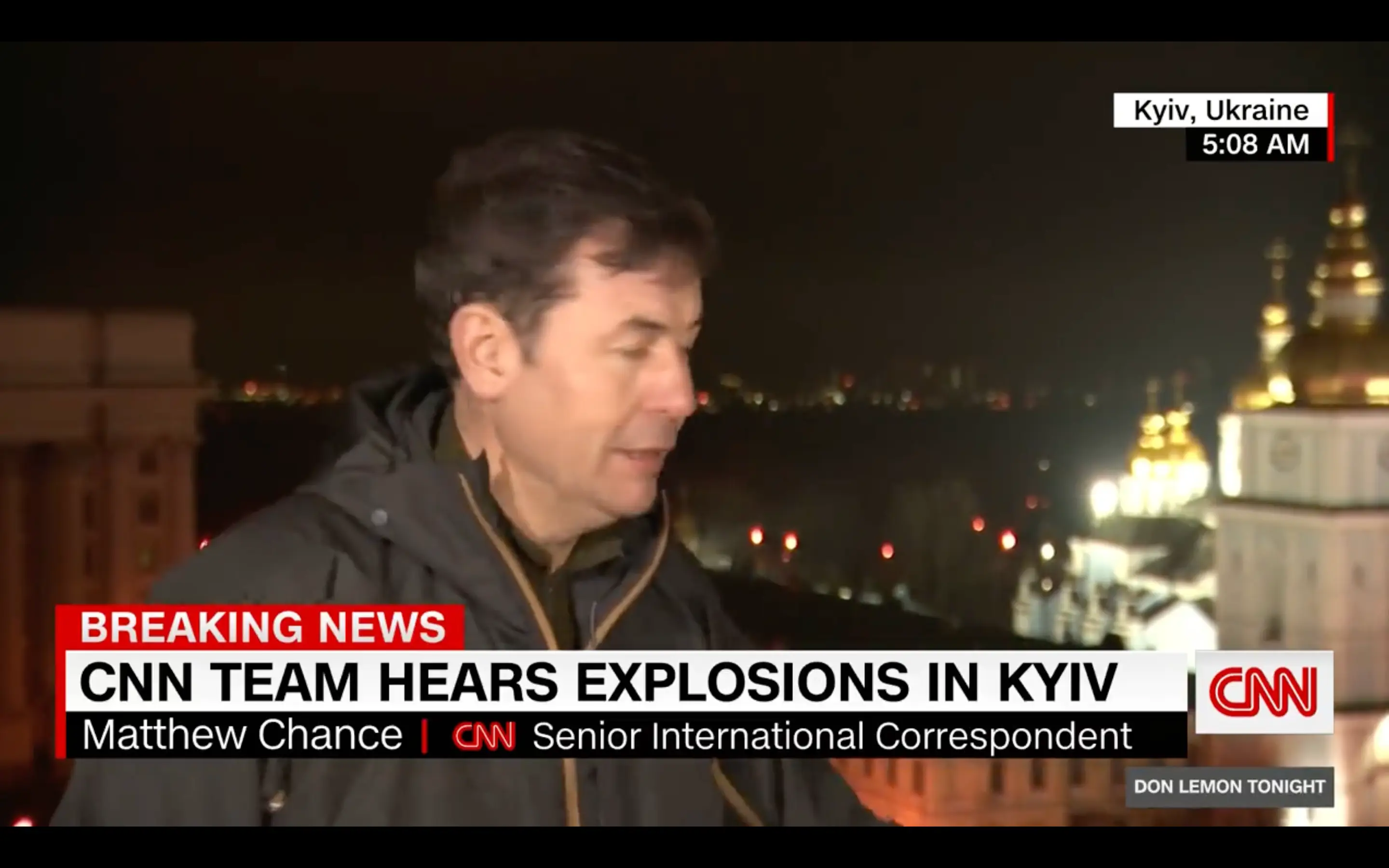 Explosions in the Ukrainian capital Kiev interrupted the live broadcast of a CNN journalist, as Russia launched a 'military operation' in the country. You can see the broadcast in the video below.