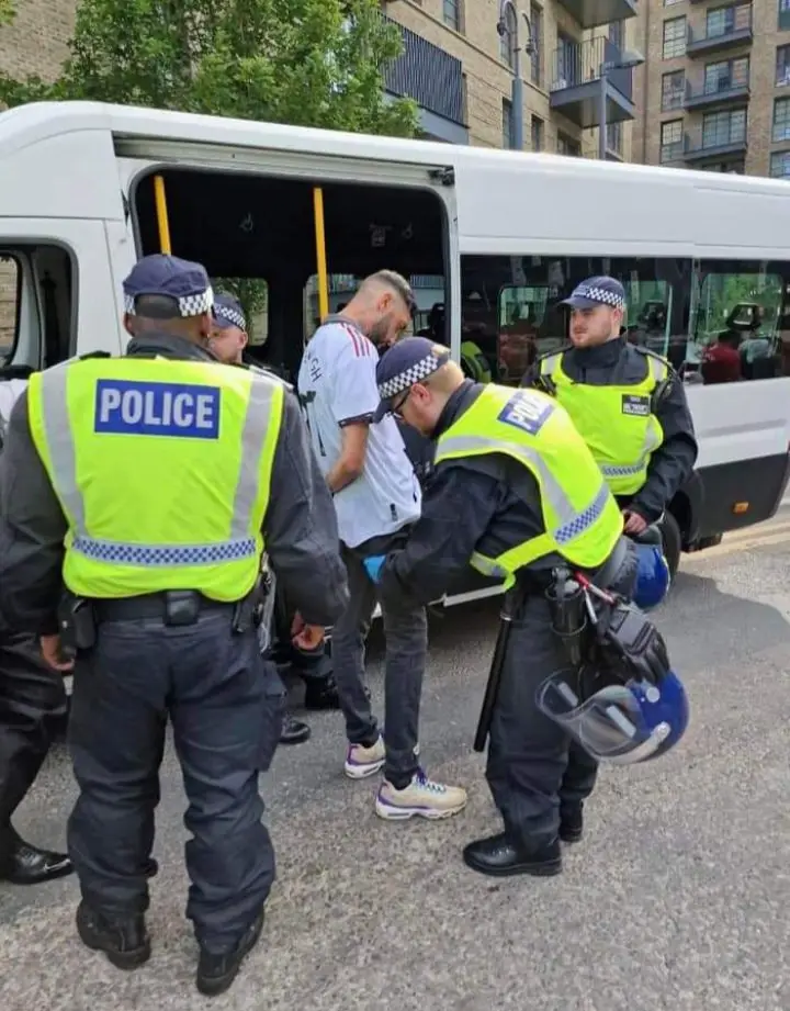 A statement from the Met said: "He was arrested after being seen wearing a shirt which appeared to refer in offensive terms to those who died in the Hillsborough tragedy."