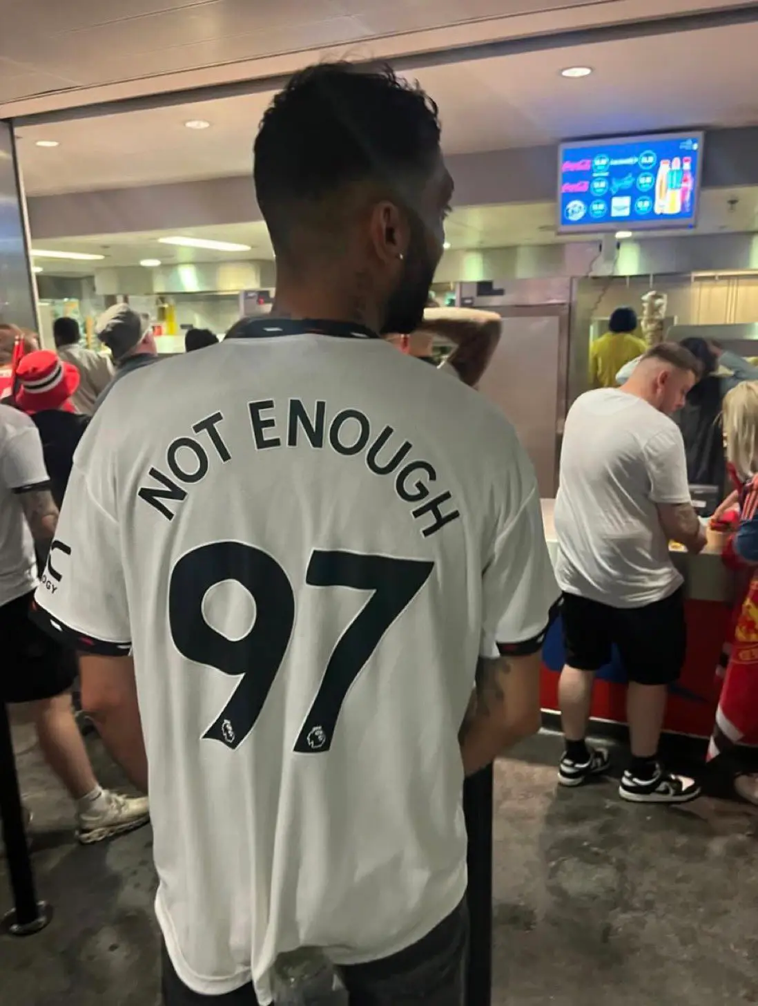 The Metropolitan Police Events Twitter account retweeted a picture on Saturday (3 June) of a man wearing a Manchester United shirt that had the number 97 on the back and the words ‘Not Enough’.