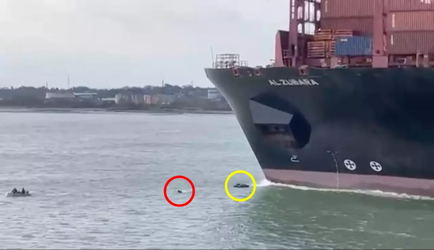 Passengers on a car ferry coming into Southampton were subject to the incident, with college student Eden East, 18, filming the whole thing.