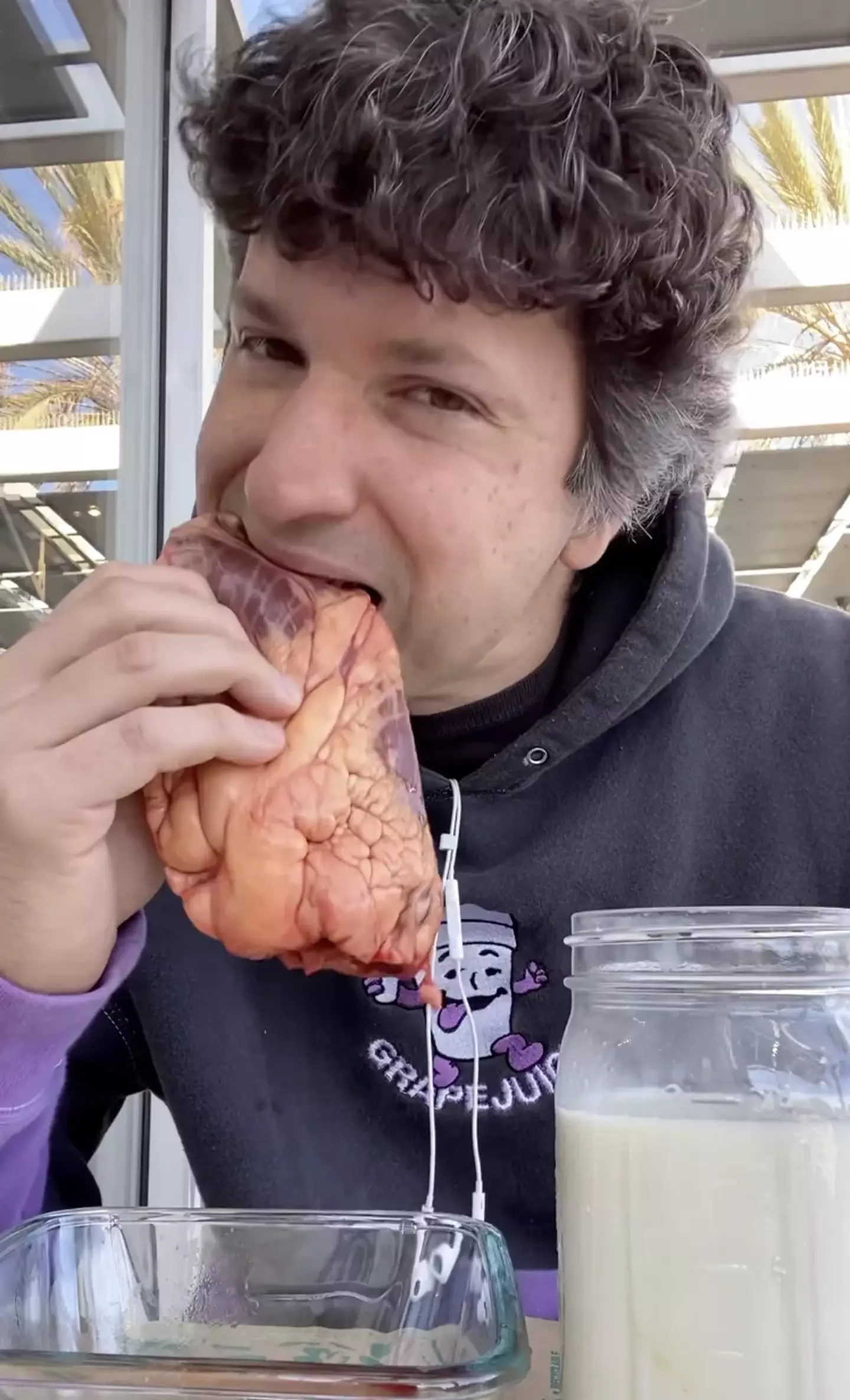 The bloke started an account on Instagram where he posts daily videos of him chowing down on uncooked chicken breasts, full rib-eye steaks and downing glasses of eggs or milk.