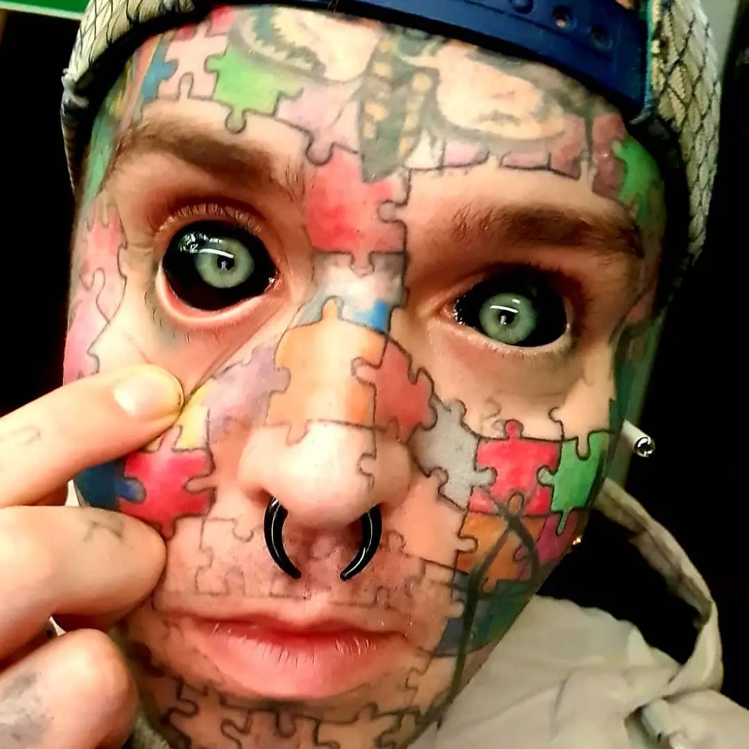 The 28-year-old has also opted to surgically remove chunks of his ear cartilage, while having his nostrils pierced and his earlobes pierced and stretched.