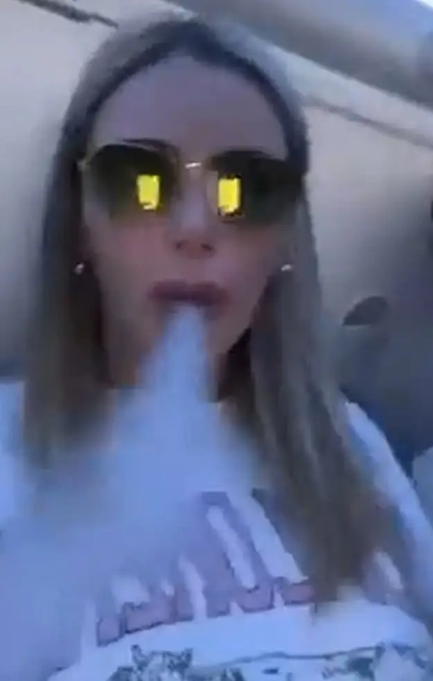 Another passenger was also seen casually vaping directly into the camera with sunglasses on.