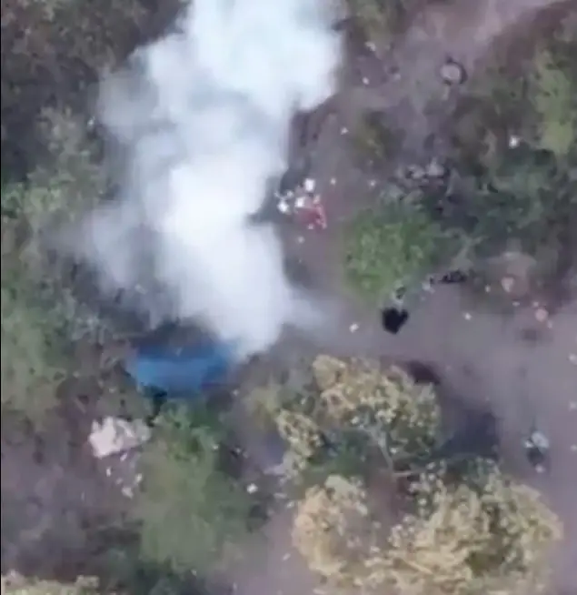 The video, which was shared online by Conflict News Worldwide, shows people in a woodland camp seeming to narrowly escape death following a suspected strike from the Jalisco New Generation Cartel.
