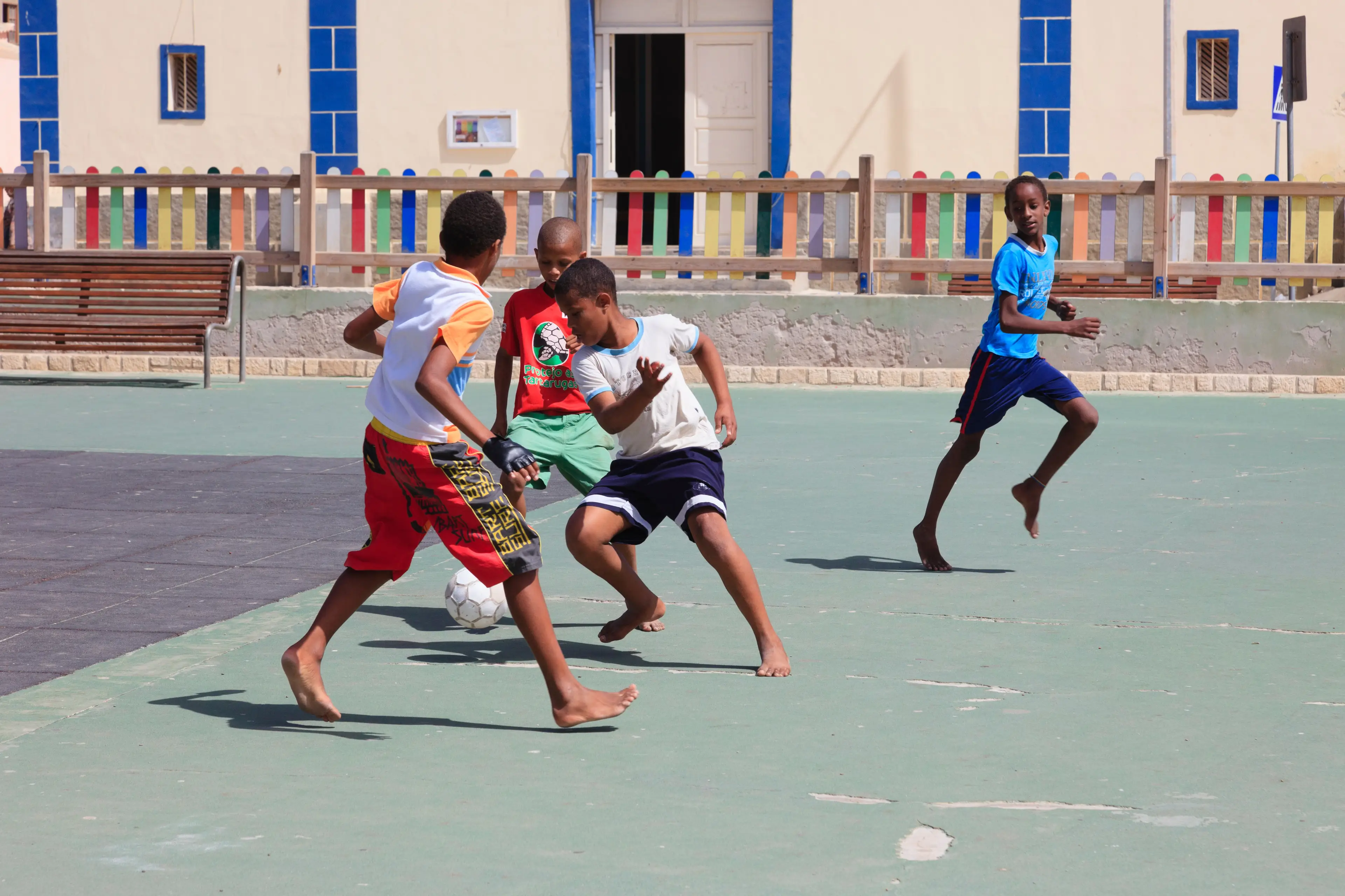 And once word got out that sneakers were up for grabs, the schools were ‘completely packed’ with eager children waiting to snag a pair.