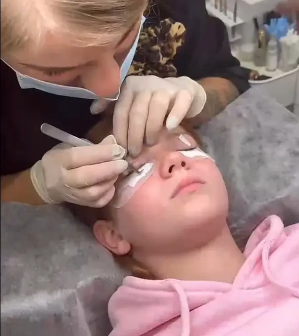 Jacenko shared a snap of her 11-year-old undergoing a lash treatment and lift on her Instagram stories.