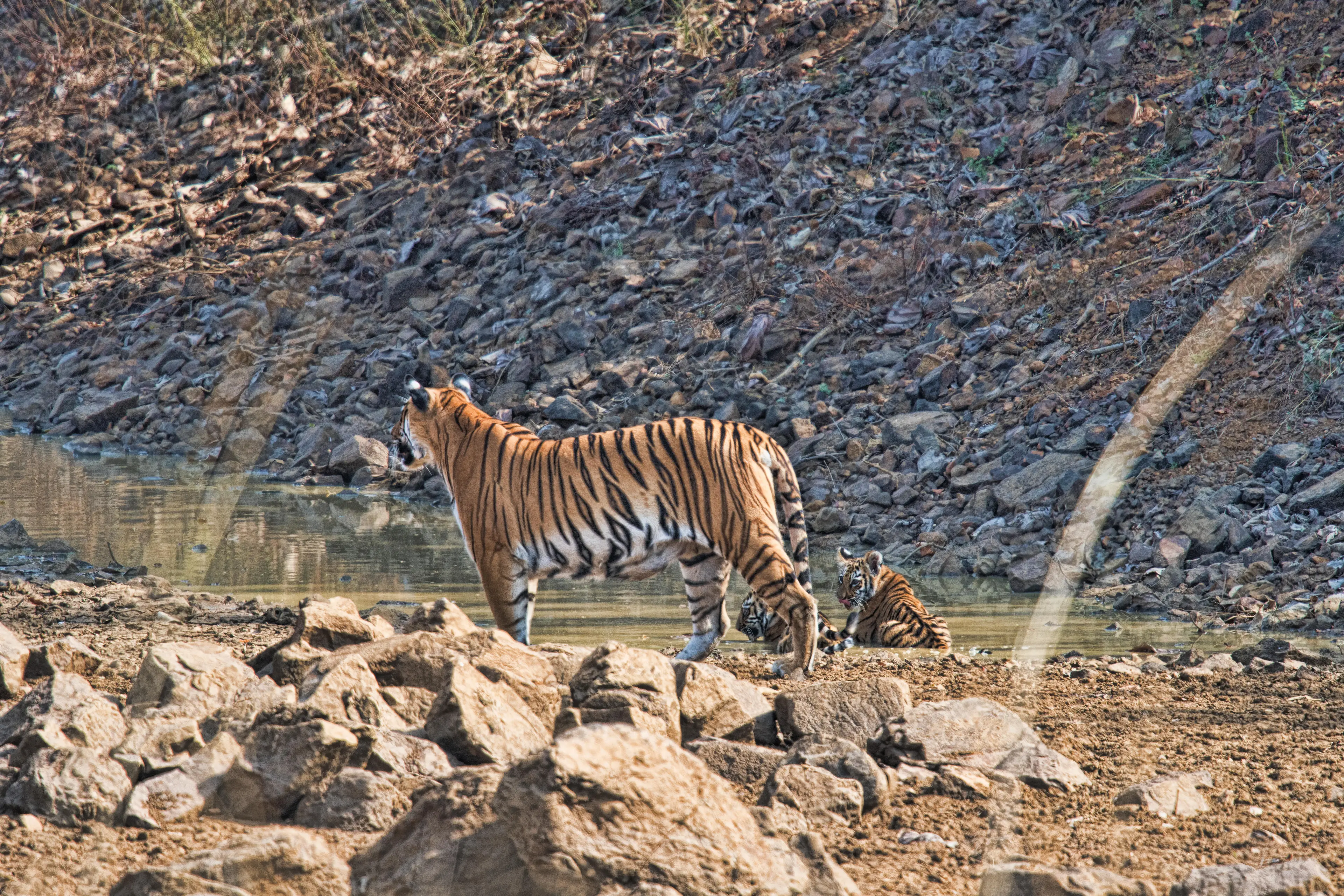 In July last year, a man in a nearby village survived while facing off with tigers after being left stranded when his motorcycle crashed.