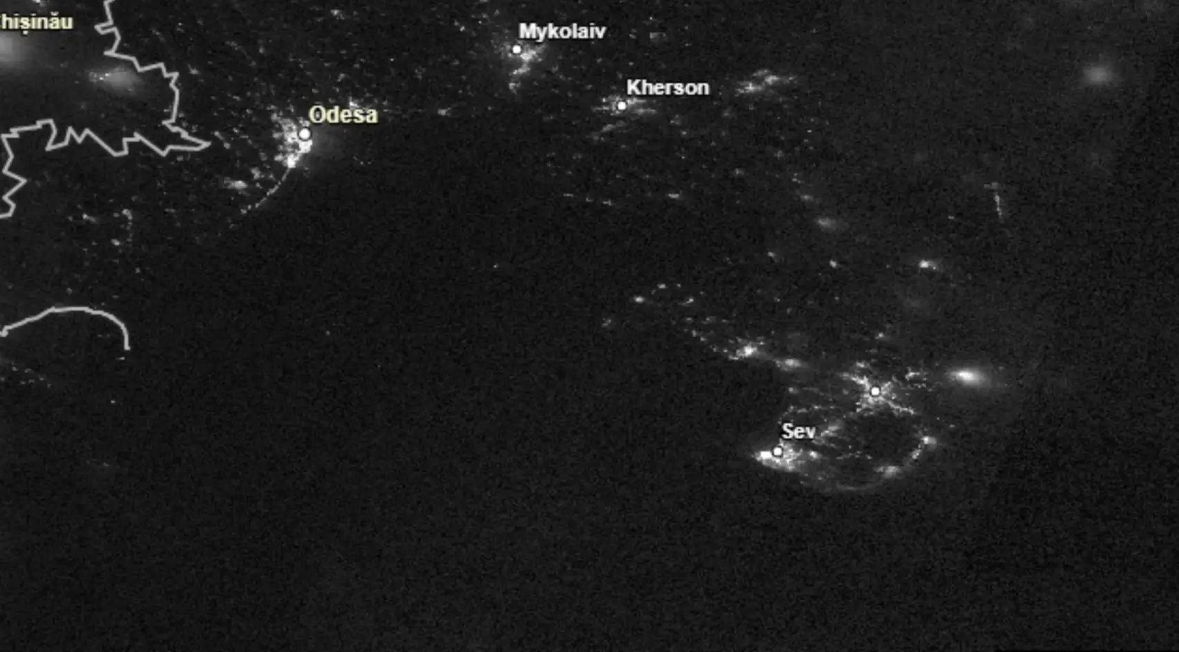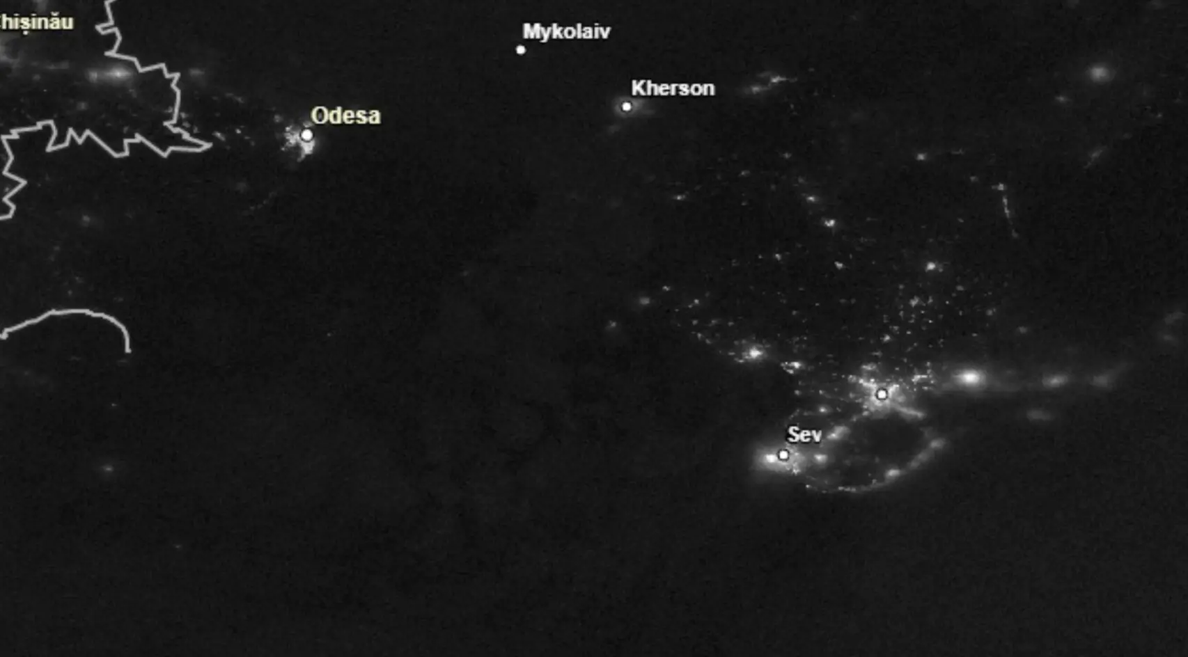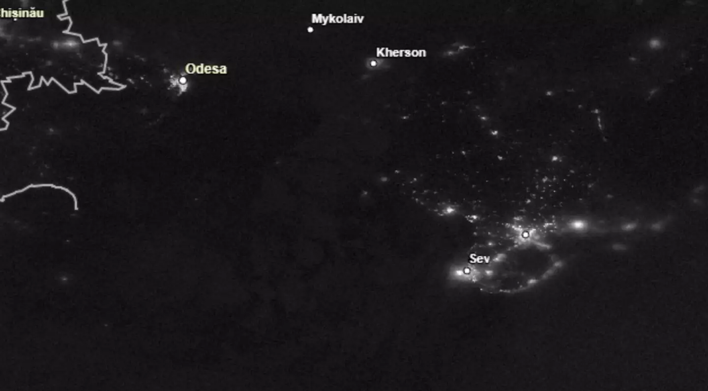 In the satellite images, lights around Mykolaiv have almost completely disappeared.