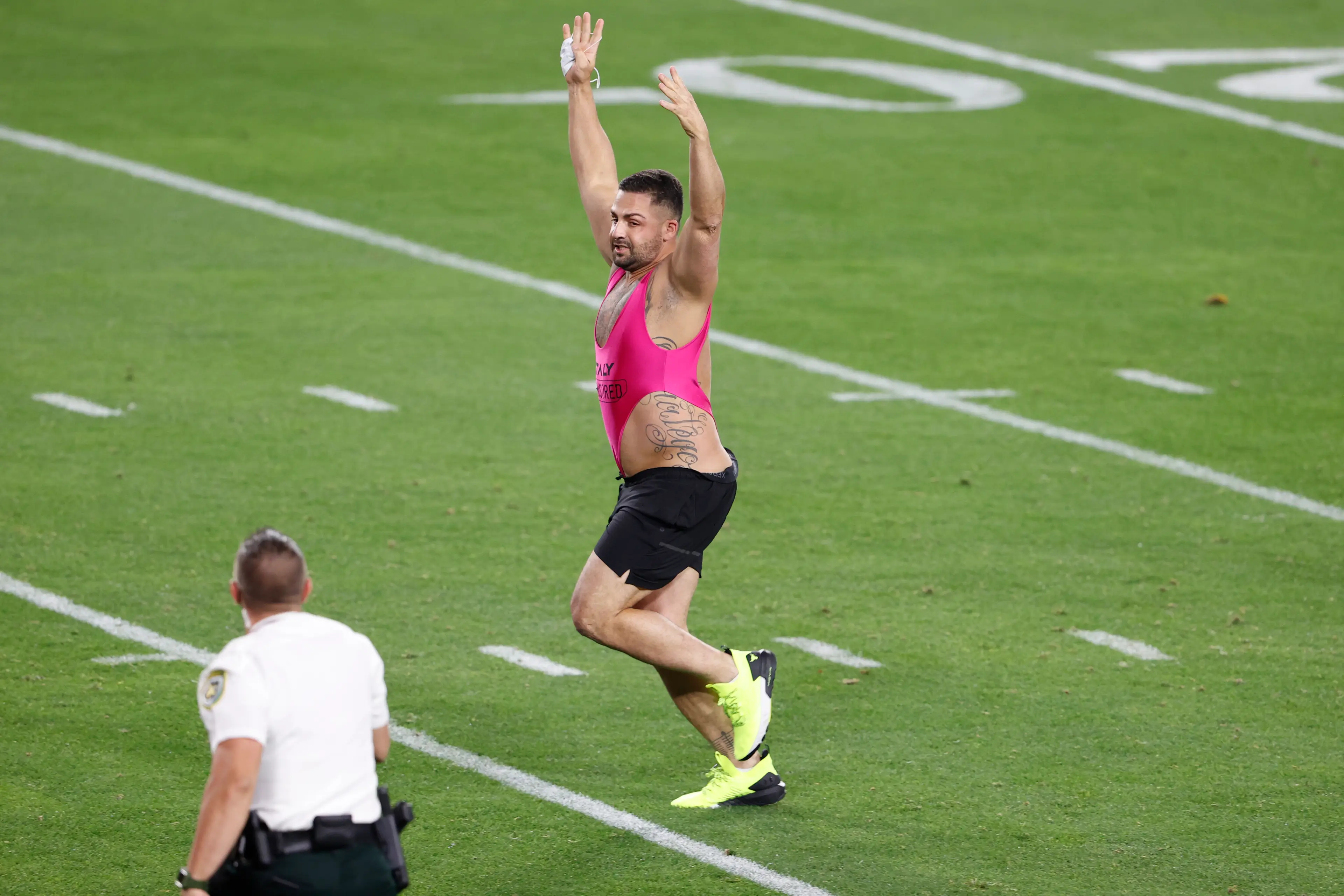 Andrade - who sprinted onto the playing field in the fourth quarter of the Super Bowl sporting a pink mankini before being tackled by enforcement officers - says he staked $50,000 (£36,000) across multiple bookmakers on someone running onto the playing field during the game, knowing he would be making a bid to get onto the pitch himself.