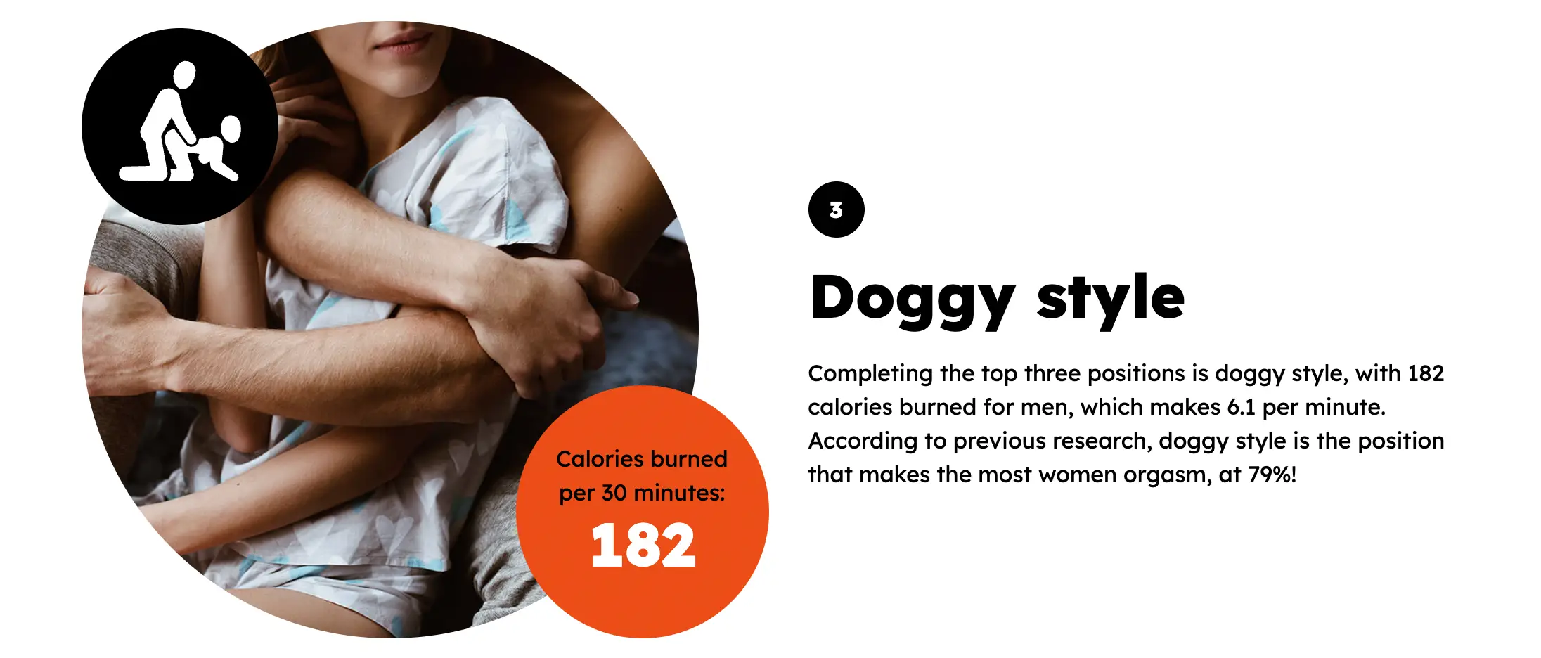 “According to previous research, doggy style is the position that makes the most women orgasm, at 79%.”