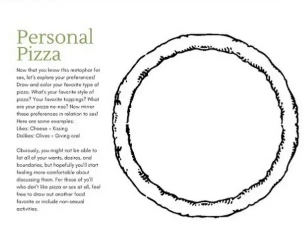 "For those of y'all that don't like pizza or sex at all, feel free to draw out another food favourite or include non-sexual activities."
