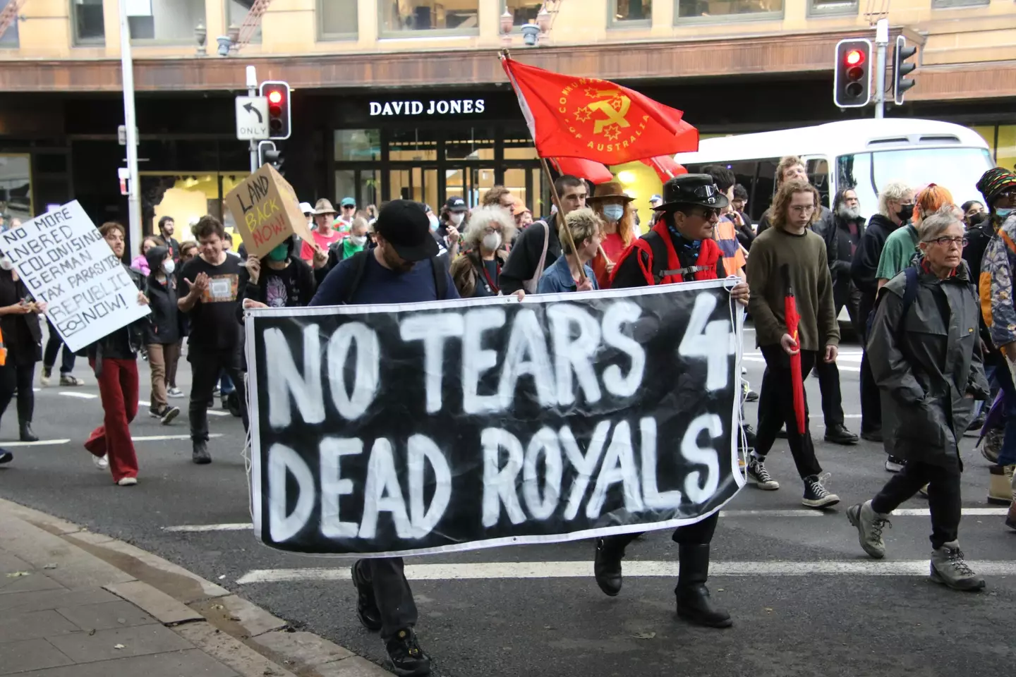In Melbourne, chants of ‘off with his head, off with the King’, were heard throughout the CBD as people marched from Birrarung Marr to Parliament House.