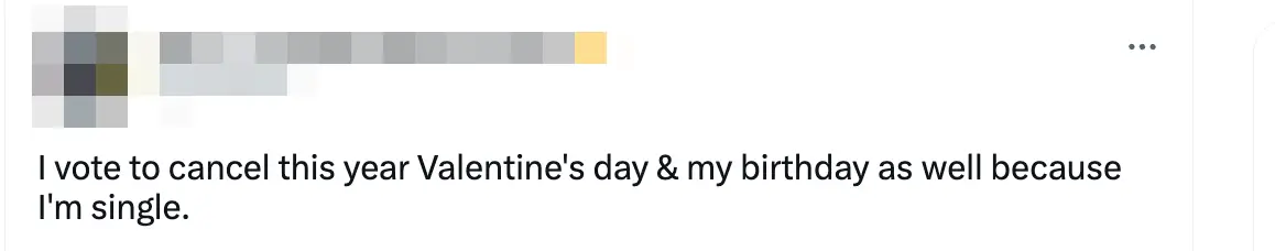 A fourth quipped: "I vote to cancel this year Valentine's day & my birthday as well because I'm single."