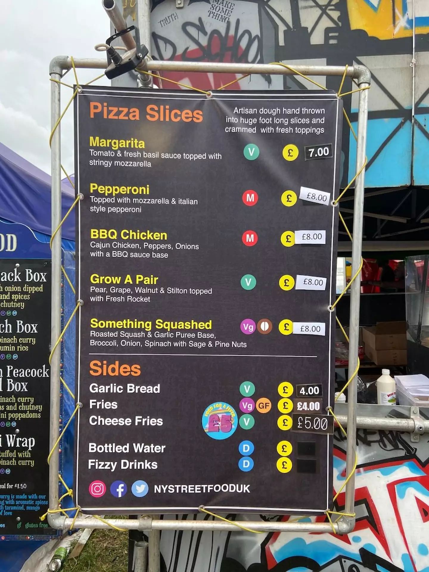 While a third thought: "Festivals in the UK are extortionate £10 for a burger from a food trailer."