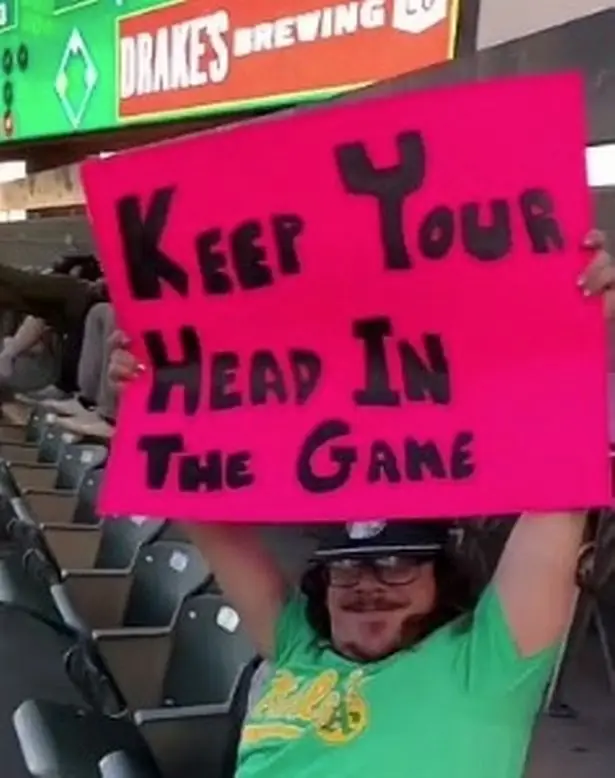 After the footage went viral, fellow baseball fans visited the stadium carrying cheeky signs relating to the clip.