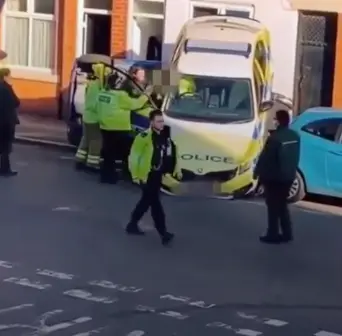 The incident which took place in Leicester showed the car propped up on top of another vehicle while emergency workers surrounded the officer, providing the officer assistance in getting out.