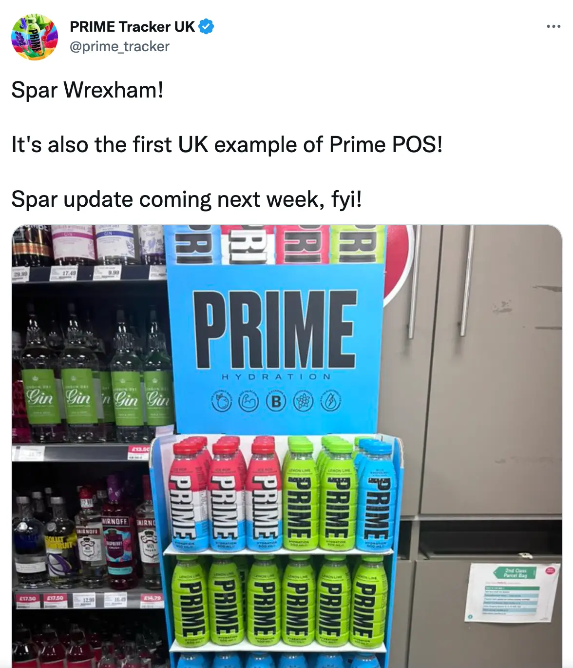 In a screenshot from a leaked internal message to Spar stores, the Prime Tracker Twitter account has claimed the drink will be available in three flavours from Spar as early as the first week of January.
