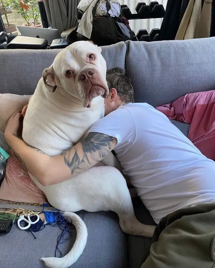 The rapper's 'best friend' was diagnosed with lymphoma and today the 38-year-old posted a photo of him cuddling his pet on the sofa along with a heartfelt caption.
