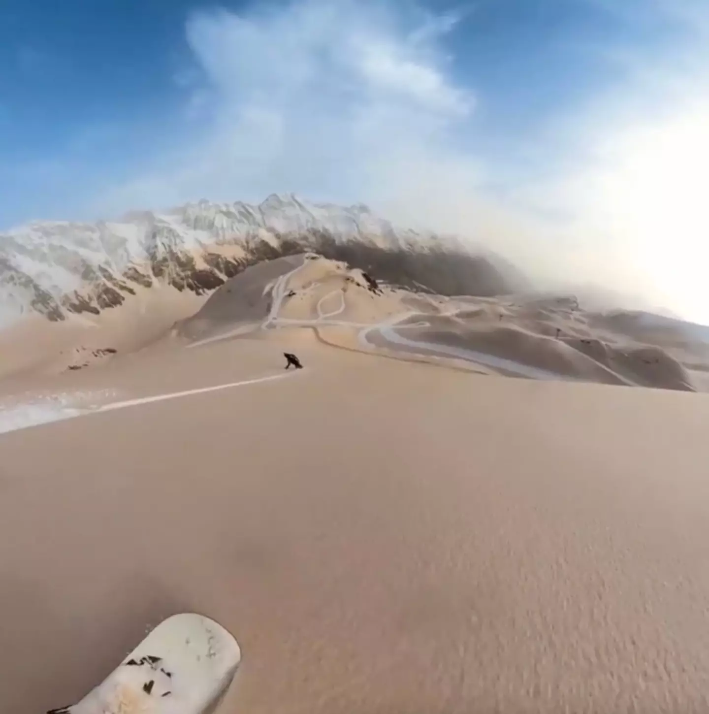 Double European windsurfing champion Sam Esteve and the In Pow We Trust snowboarding crew filmed themselves careening down the mountain over the sand and snow.