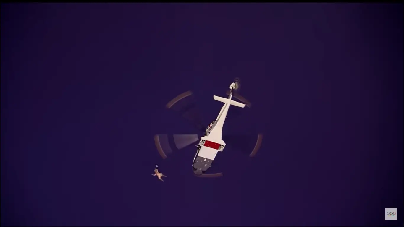 The two then make their way back through the palace halls together before climbing into a helicopter, which takes off and makes its way towards the Olympic Stadium.