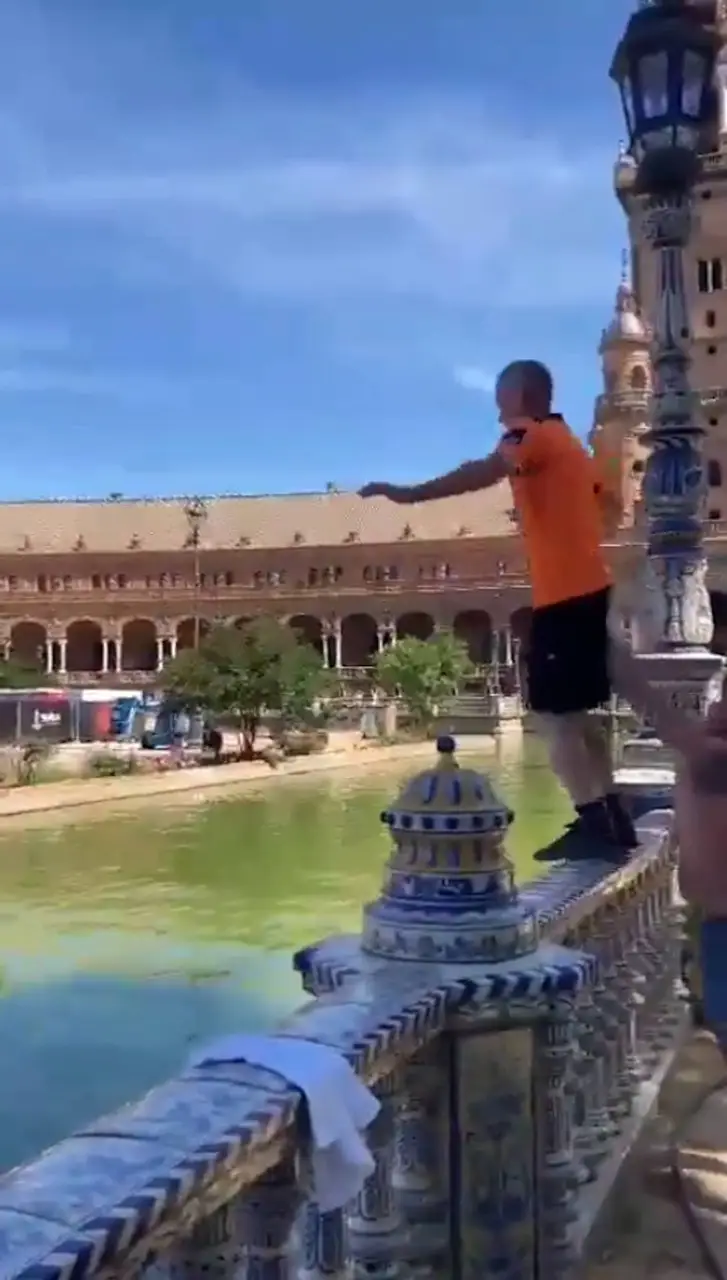 Spanish residents are fuming after a Rangers fan was filmed jumping into the famous Plaza de España pond in Seville ahead of the Europa League Final. Watch below: