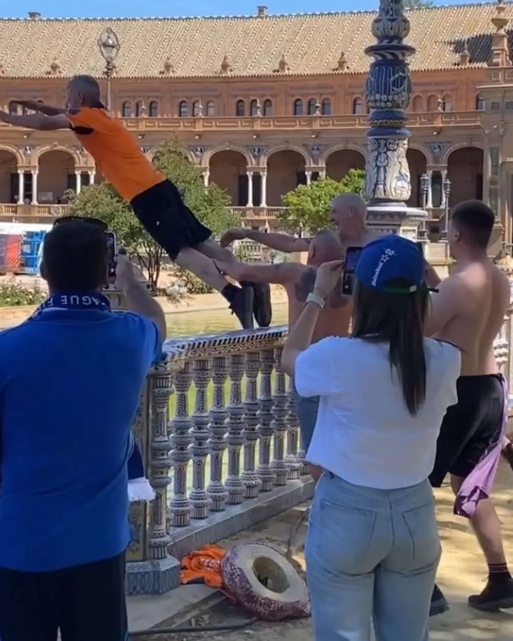 Curro Bono Borerro filmed the football supporter jumping onto one of the railings at the tourist attraction yesterday afternoon (17 May) before diving into the water.