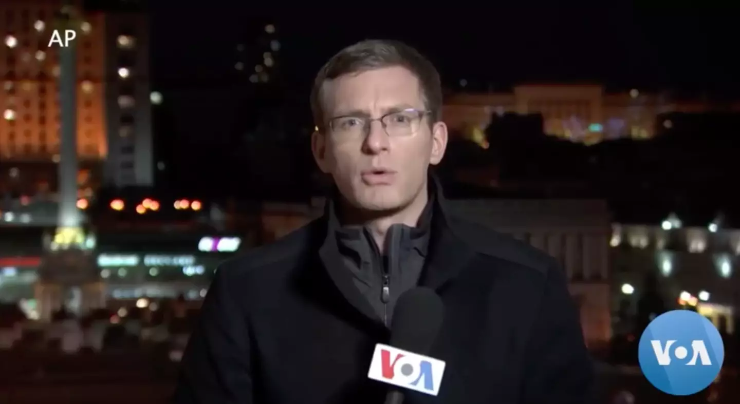 During the English bit of his report, Crowther explained: "There's been a war with Russian-backed forces in the east, the Donbas region for eight years now. But despite that, the capital city of Kyiv is relatively calm."