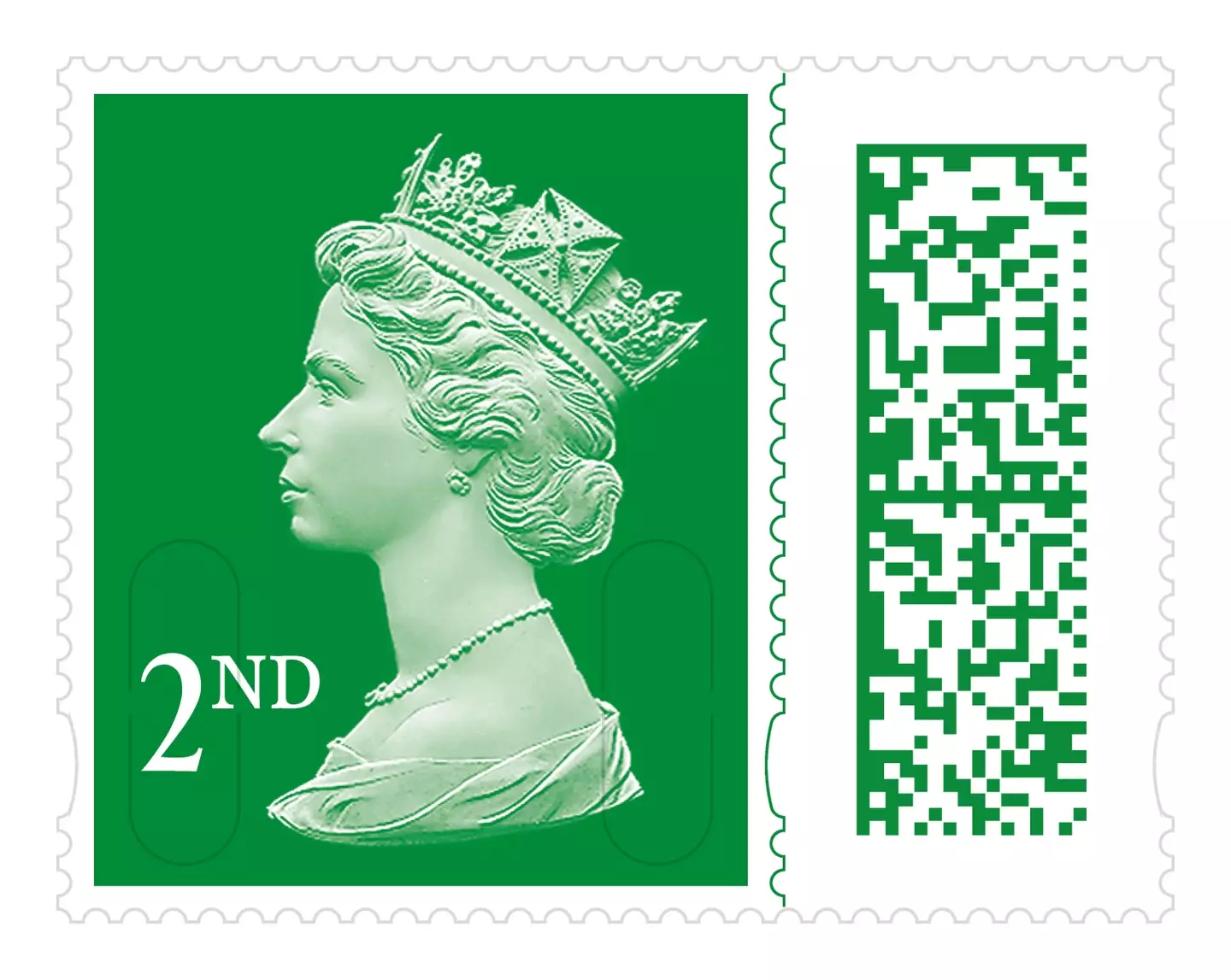 The barcodes themselves match the stamp’s colour and sit alongside the main body of the stamp, separated by a simulated perforated line.