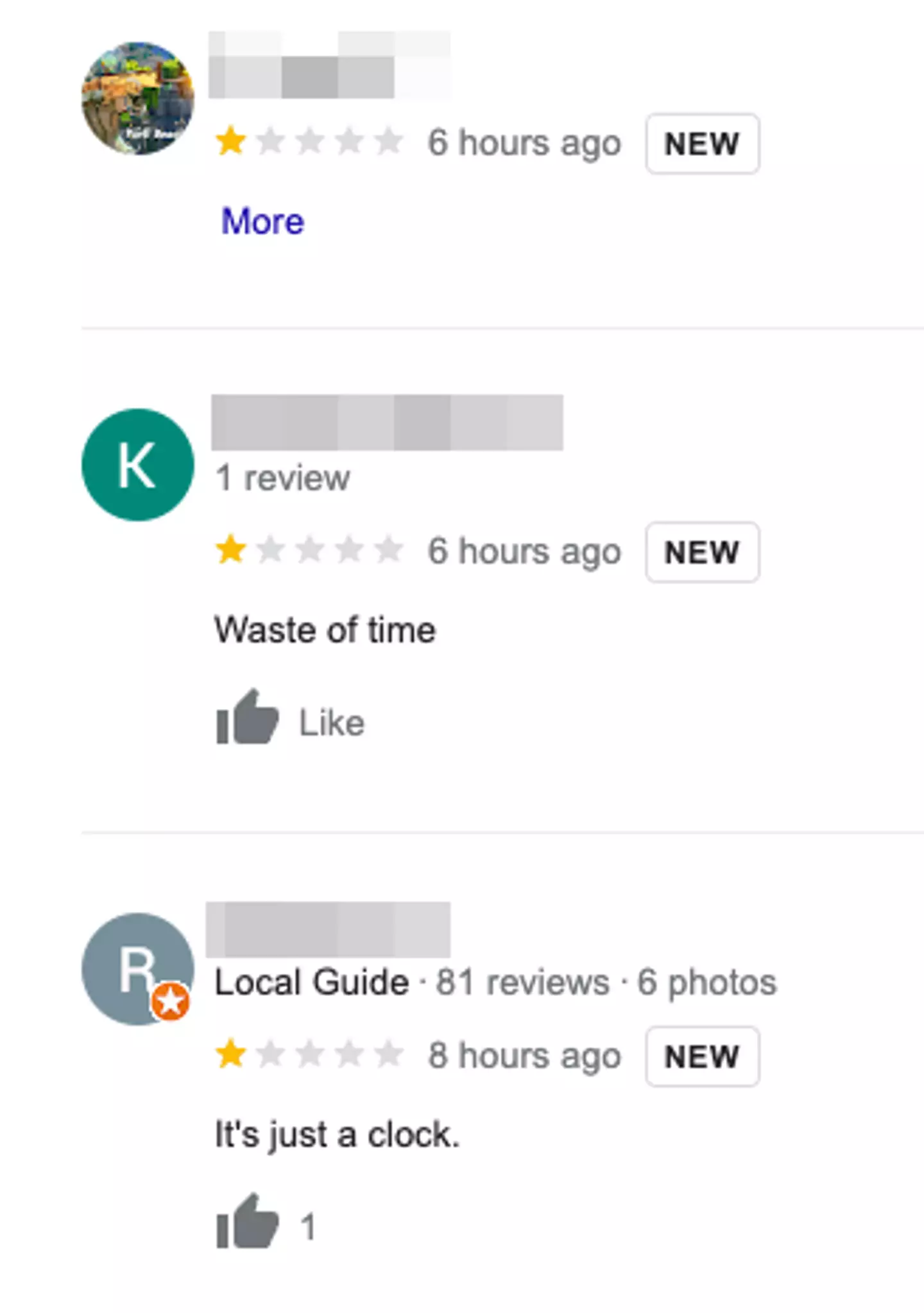 Another added: "If I wanted to see a clock, I'd just look at me wrist."