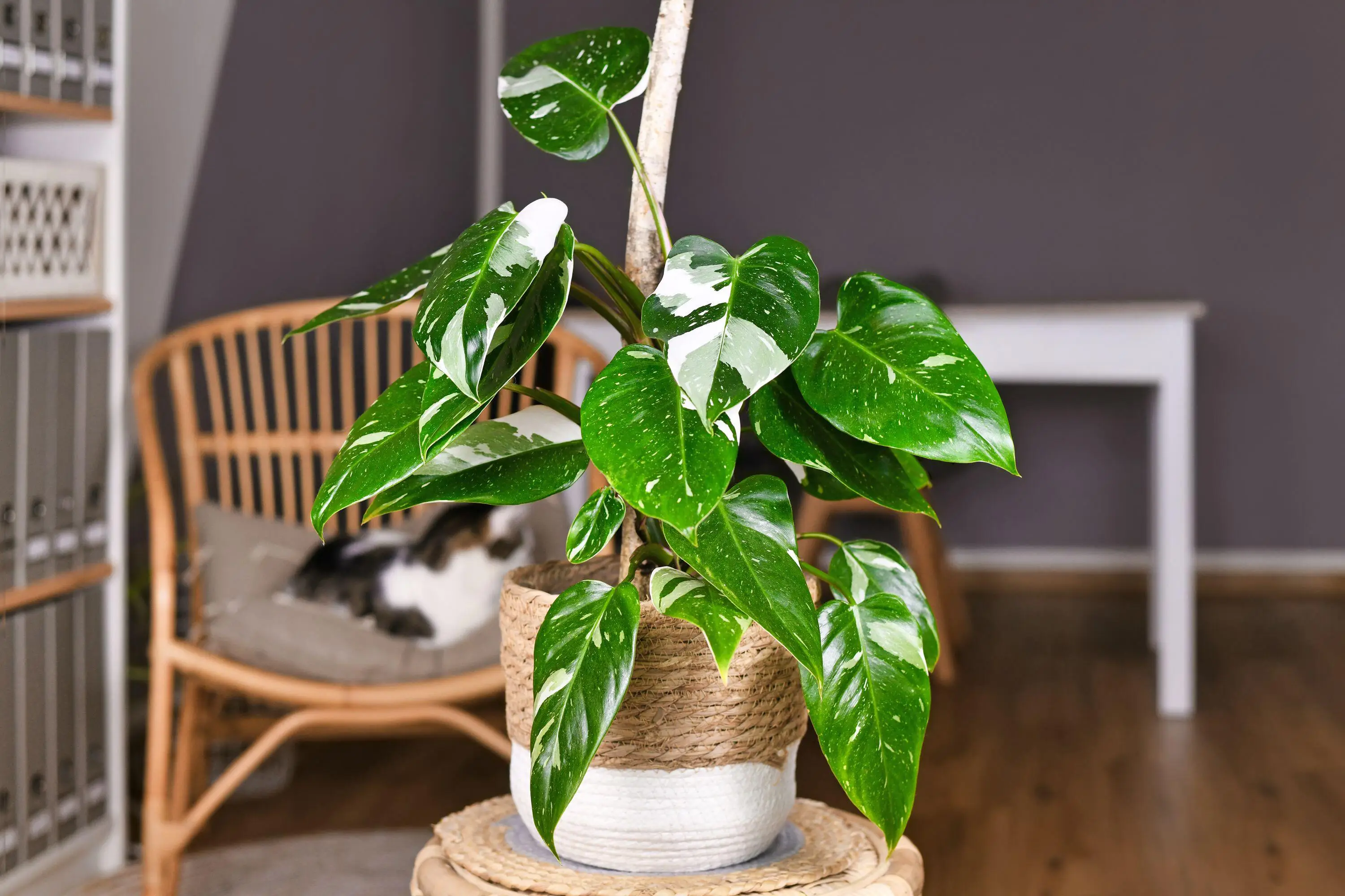 The variegated Monstera Deliciosa is known as the Swiss cheese plant because of the holes in its leaves.