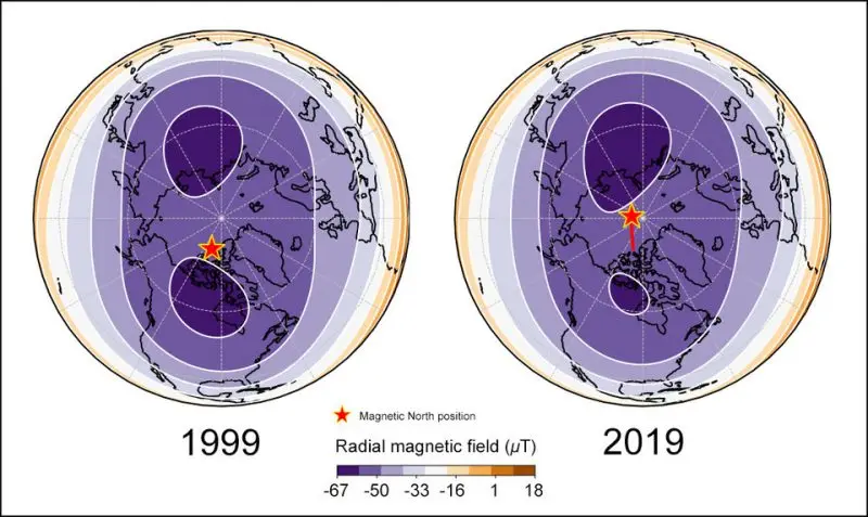 Now the north pole is moving southwards, making its way towards the Russian province of Siberia.