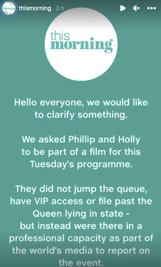 Amid the backlash, the official This Morning Instagram account also posted a statement earlier this week defending Holly and Phil, beginning: "Hello everyone, we would like to clarify something."