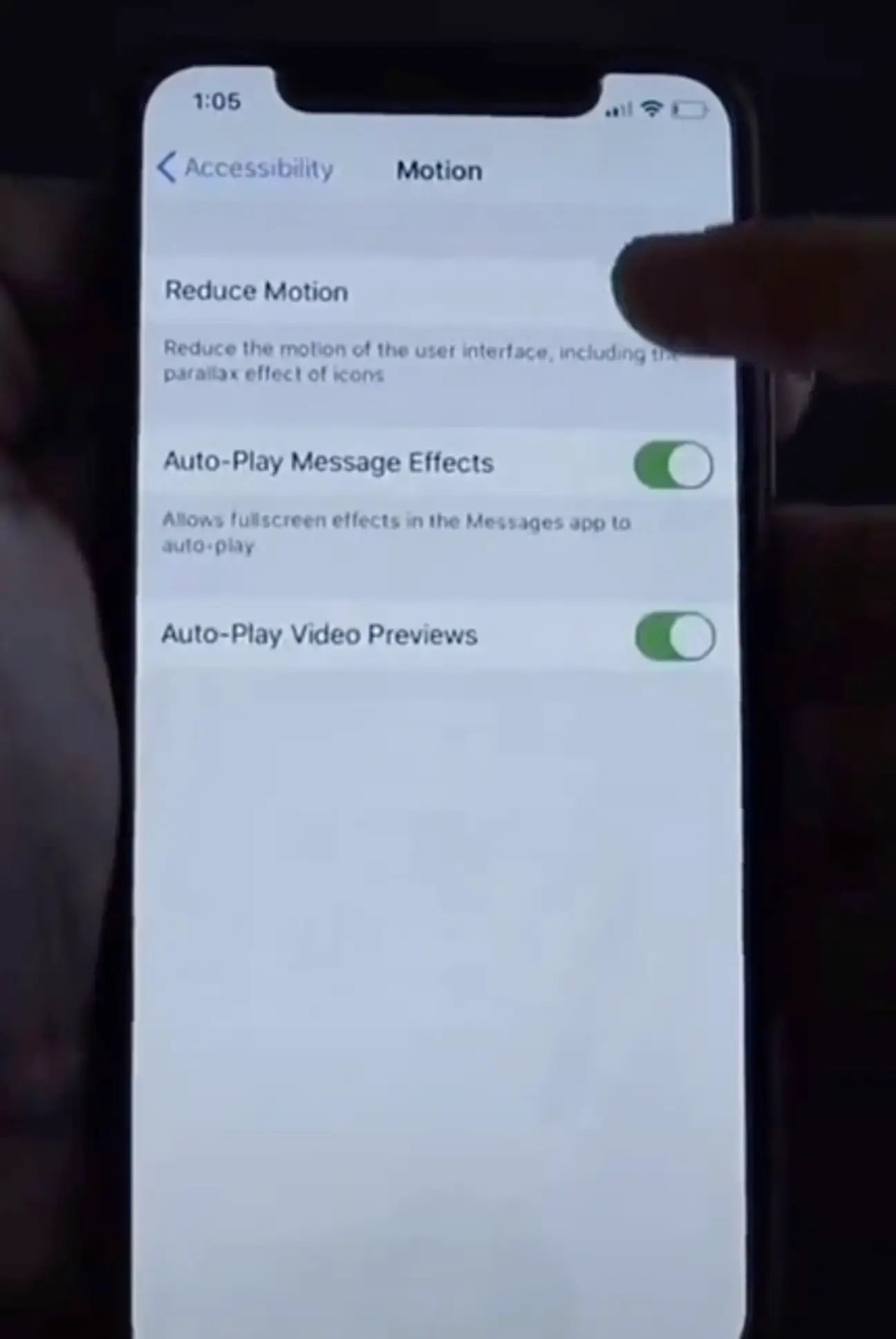 And by 'these two', he means to switch off the toggles next to Auto-Play Message Effects and Auto-Play Video Previews.